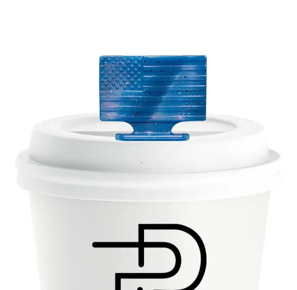 Elevate every sip with our bold, patriotic blue American flag Posh Topper—featuring shimmering red and white glitter, all 50 stars, and 13 stripes. Designed to prevent spills, retain heat, and stir in style, this eye-catching splash stick adds a spirited touch to any to-go cup.
